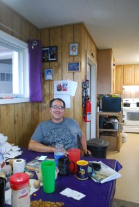 In Holy Cross angekommen, kaufte ich erstmal ein paar frische Äpfel, als Auswuchs der Zivilisation eine Pepsi (in dem Laden, wo man mich nachts weggescheucht hatte) und ließ mir sagen wo das Post Office sei. Dort wartete – hoffentlich – mein „general delivery“ Care-Paket, dass ich mir hierhin habe schicken lassen. Unterwegs wurde ich von einem älteren Ehepaar im Pick-Up mitgenommen. Ein Träumchen, den Holy Cross ist sehr weitläufig. Und als ich aus dem Post Office rausmarschierte – mit Paket – dauerte es auch nicht lange, bis mich jemand auf seiner Quad mitnahm wieder runter zum Fluss. Und jetzt?  Es war noch viel zu früh fürs lospaddeln (es war doch wieder etwas windig). Und ich war mir nicht einmal mehr sicher, ob ich das noch wollte! Ich latschte also wieder zur Stadt zum Tribal Office – vielleicht durfte ich ja dort ins Internet, Emails abrufen und einmal den Wetterbericht lesen? Leider nahm mich diesmal niemand mit. Man ließ mich im Tribal Office tatsächlich ins Internet und ich schöpfte Mut aus dem Wetterbericht. Nachdem ich ein Nickerchen auf den Sofas gemacht hatte, fragte ich, ob den jemand den Garrett kenne, der sei ja kürzlich hierher gezogen. Man kannte ihn tatsächlich und gab mir seine Nummer. Und Garrett war tatsächlich zu Hause! Er beschrieb mir grob, wo ich hin sollte und sammelte mich unterwegs ein. Bei Garrett konnte man noch besser ausruhen (Dosenbier gabs diesmal nicht), und seine Einschätzung der Wetterlage war auch positiv („four days of good weather, afterwards it’s getting bad“). Dennoch, mein Bauchgefühl quälte mich. In Gedanken malte ich mir aus, ob es helfen könnte, erneut ein bisschen zu schummeln… ich fragte Garrett, ob er sich – oder jemand anderes – vorstellen könne… Die Antwort war recht einfach und klar: „Och, nö.“ Und in dem Moment wurde es mir zu blöd. Himmel. Hier aufhören oder schummeln? Blödsinn. Immer schön einen Paddelschlag nach dem anderen. Immer nur bis zum nächsten Dorf denken und paddeln und dann weitersehen. Also entschied ich, aufzubrechen – Garrett brachte mich wieder runter zum Boot, wo ich noch flugs die Nahrung aus dem Paket neu verteilen und ein paar Sachen aussortieren musste – ich hatte recht großzügig geplant und wusste jetzt nicht so recht, was ich mit dem Zeug machen sollte. Garrett brauchte nichts und so fuhren wir zum Tribal Office, wo man die Sachen gerne für Bedürftige in Empfang nahm.