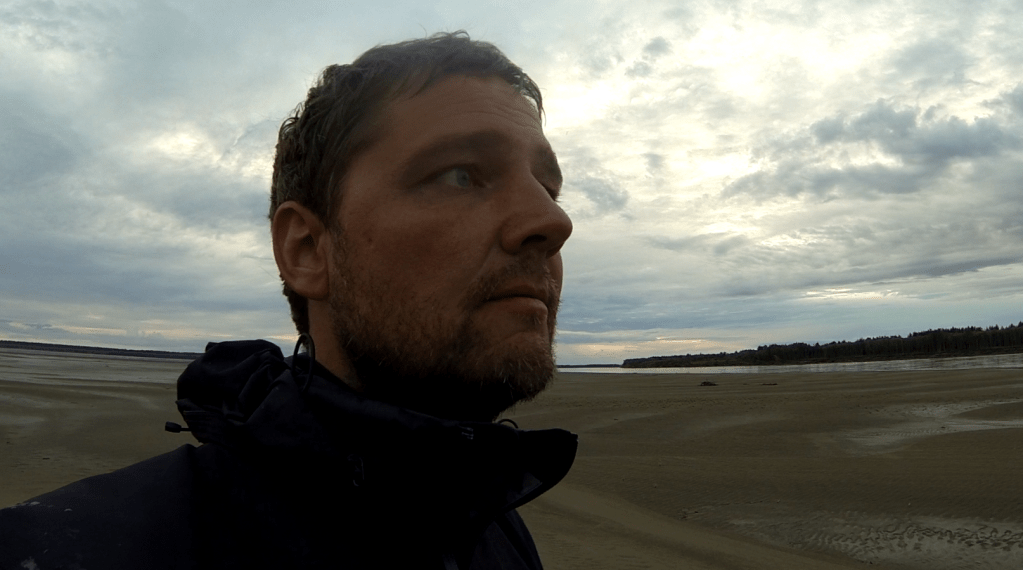 Drei Stunden und ein Nickerchen am Ufer später machte ich mich auf nach Mountain Village. Ganz gemäß der bisherigen Ausrichtung immer schön am rechten, geschützten Ufer entlang. Zwar wurde es ab und an durch einige machmal verfallene, manchmal noch genutzte Hütten am Ufer aufgelockert, und es gab keinen Gegenwind (!), aber es zog sich gefühlt weiterhin. Schließlich, man hörte schon von weitem Motoren (Motorsägen, Quads und Boote), kam ich zum Dorf. Ich legte etwas früher an (21.00 Uhr abends), damit ich nicht in den großen Trubel am Hauptufer kam. Aber hier keine Menschen zu erwarten… ich traf Jeff, bzw. Jeff kam runter um mal zu sehen, wer da so am Ufer angelandet hatte. Jeff, eine echte Trappernatur, kannte nahezu alle Menschen, die ich auf meiner Reise hier getroffen hatte. Ob Ken Chase aus Anvik oder Jack Schultheis (siehe „The streets of Emmonak“, 2016), ganz egal. Er ist sogar auf Youtube unter „yukonjeff“ zu finden. Absolutes Highlight: Jeff brachte mir einen riesengoßes Elchburgerpatty (moose burger). Wow und Danke!