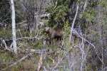 Aber damit nicht genug. „Endlich“ sehe ich meinen ersten Grizzly, der fast direkt in unser Camp marschiert, wahrscheinlich weil er die Fische auf dem Grill gerochen hat: Thommy hört Geräusche an den Booten und guckt kurz, kommt schnell darauf zurück – „da ist ein Bär“…