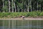 Der Creek ist nur ein paar Meter breit und fließt viel schneller als zuletzt der Yukon. Sich treiben lassen geht nicht, ständige Aufmerksamkeit ist gefragt, um den richtigen Kanal zu wählen (sonst wird man auf Steinbänke geschoben) oder nicht unter ins Wasser ragende Bäume zu kommen.