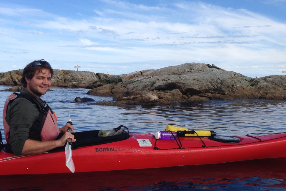 Von Vancouver aus muss man noch eine kleine logistische Meisterleistung vollbringen, um nach Victoria auf Vancouver Island zu kommen. Angekommen, erwarte ich meine Cousine Karin in einem bekannten Schnellrestaurant. Karin wohnt in einer 3er-WG und ich darf in der Wohnküche auf dem Riesensofa nächtigen. Nach einem abendlichen Abstecher in die Uni-Kneipe (nur wenig übertrieben: es gibt es einen Durchgang aus der Bibliothek hinein) erkunde ich am folgenden Morgen den Hafen und beschließe spontan, noch einmal in ein Boot zu steigen. Leider sind alle Kanuverleiher ausgebucht oder krank. Ganz am Ende an der Fisherman’s Wharf findet sich jedoch doch noch ein Verleiher, allerdings bietet er nur Touren mit Guide an… na sowas brauche ich doch nicht mehr. Andererseits ist es jetzt auch egal. Ich will aufs Wasser. Ich bin der einzige Gast. Luke, „mein“ Guide (nicht mein Sohn…) freut sich auch. Wir fachsimpeln übers Paddeln und beobachten die Seehunde (Harbour Seals), die sich auf den Felsen vorm Hafen sonnen. „We call them rock sausages!“ meint Luke und macht ein Foto, auf dem ich reichlich dämlich grinse (ganz oben). Sehr passend. Am letzten Tag machen wir mit der WG noch einen kleinen Ausflug zum Thetis Lake, kochen abends ein wenig, dann wars das.